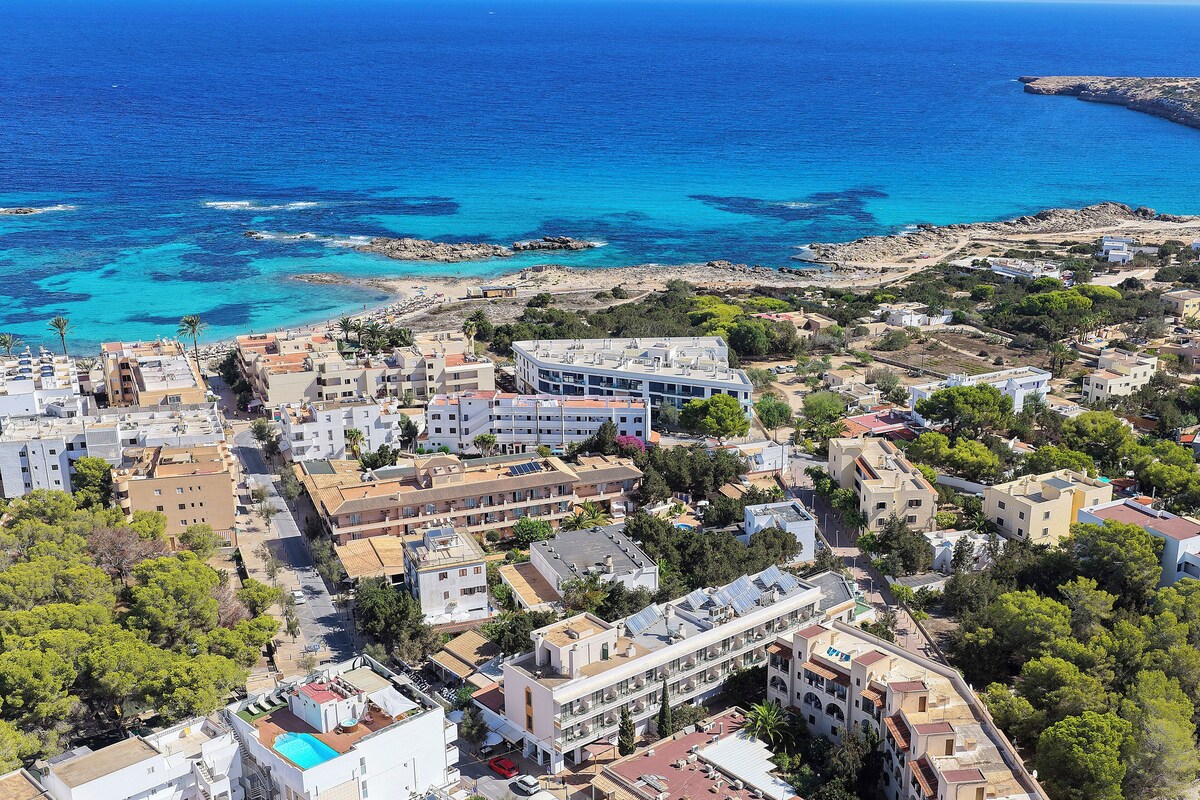 Vous séjournerez dans un hôtel très bien noté, petit-déjeuner inclus, idéalement situé à quelques minutes à pied de la plage. Le combo parfait pour profiter pleinement des eaux cristallines et du rythme slow de Formentera.